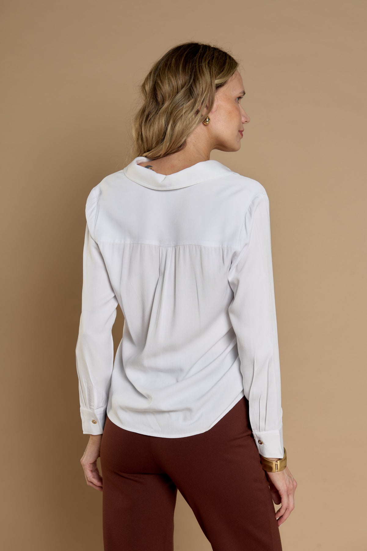 Características: Blusa de diseño elegante y versátil en un sofisticado tono blanco. Su silueta fluida y tela ligera brindan comodidad y movimiento.